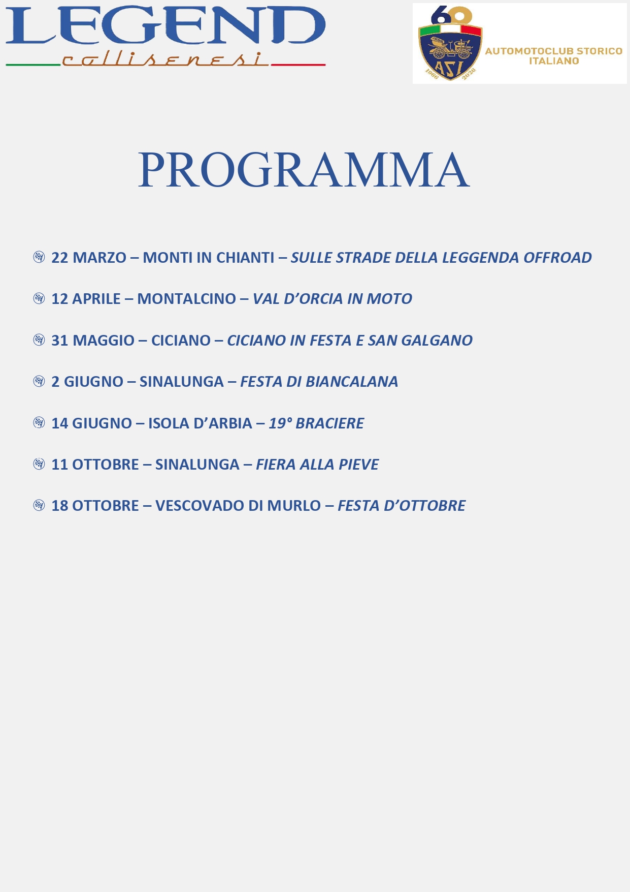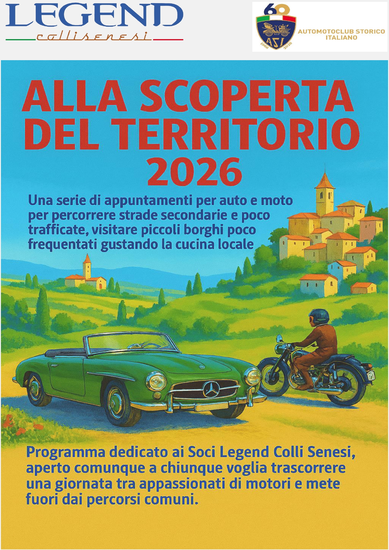 ALLA SCOPERTA DEL TERRITORIO IL PROGRAMMA POTRA’ SUBIRE VARIAZIONI – CHIAMARE SEMPRE I RECAPITI DEL CLUB PER CONFERMA Condividi: Condividi su X (Si apre in una nuova finestra) X Condividi su Facebook (Si apre in una nuova finestra) Facebook Mi piace Caricamento...